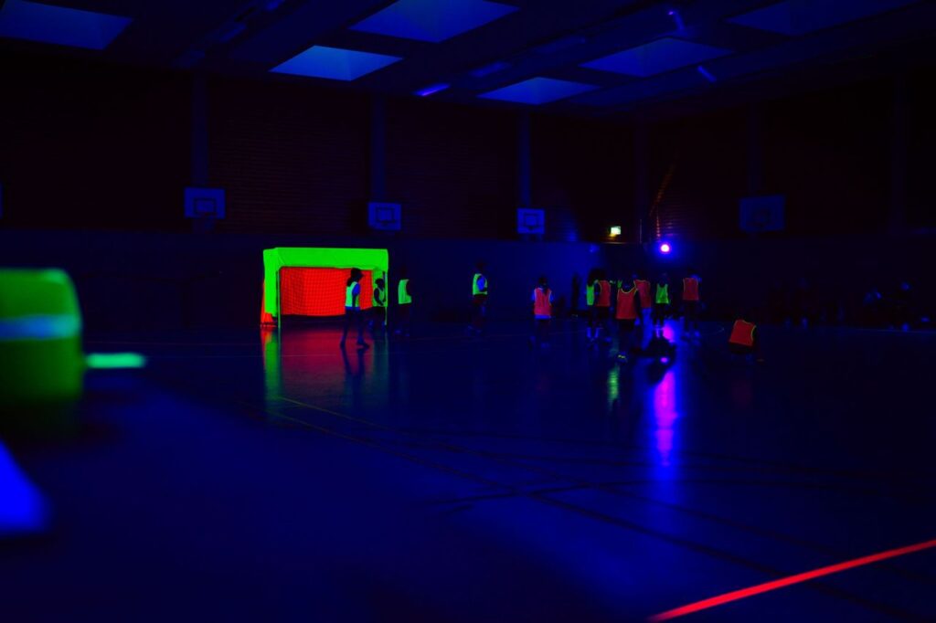 In der Halle wurde es dunkel, die Spielfeldlinien leuchteten und überall waren strahlende Gesichter zu sehen. Gespielt wurde bewusst in gemischten Teams, sodass der Spaß, das Miteinander und neue Teamkonstellationen klar im Vordergrund standen.